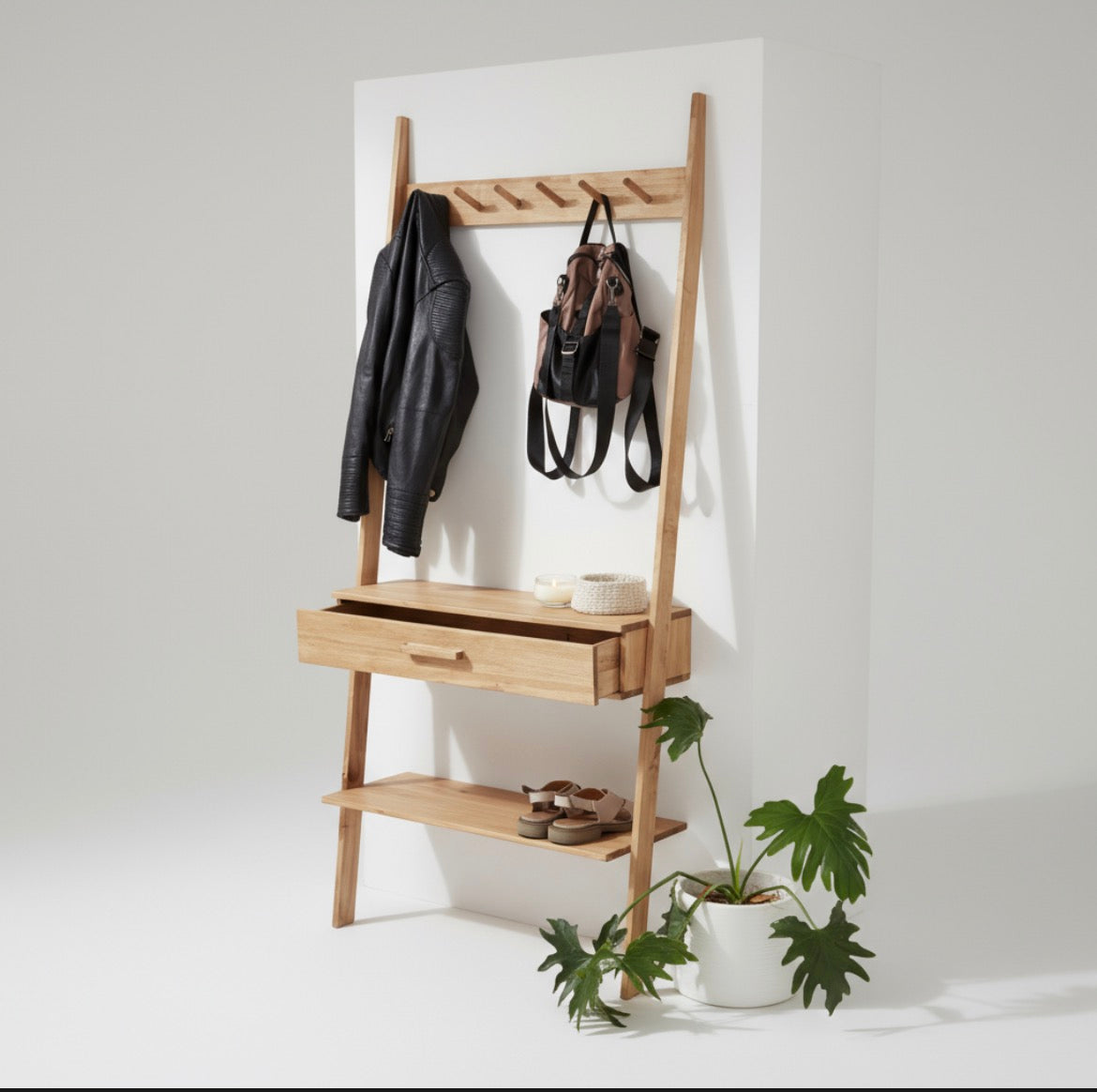 Perchero Pared Madera Nordico Con Estante Repisa