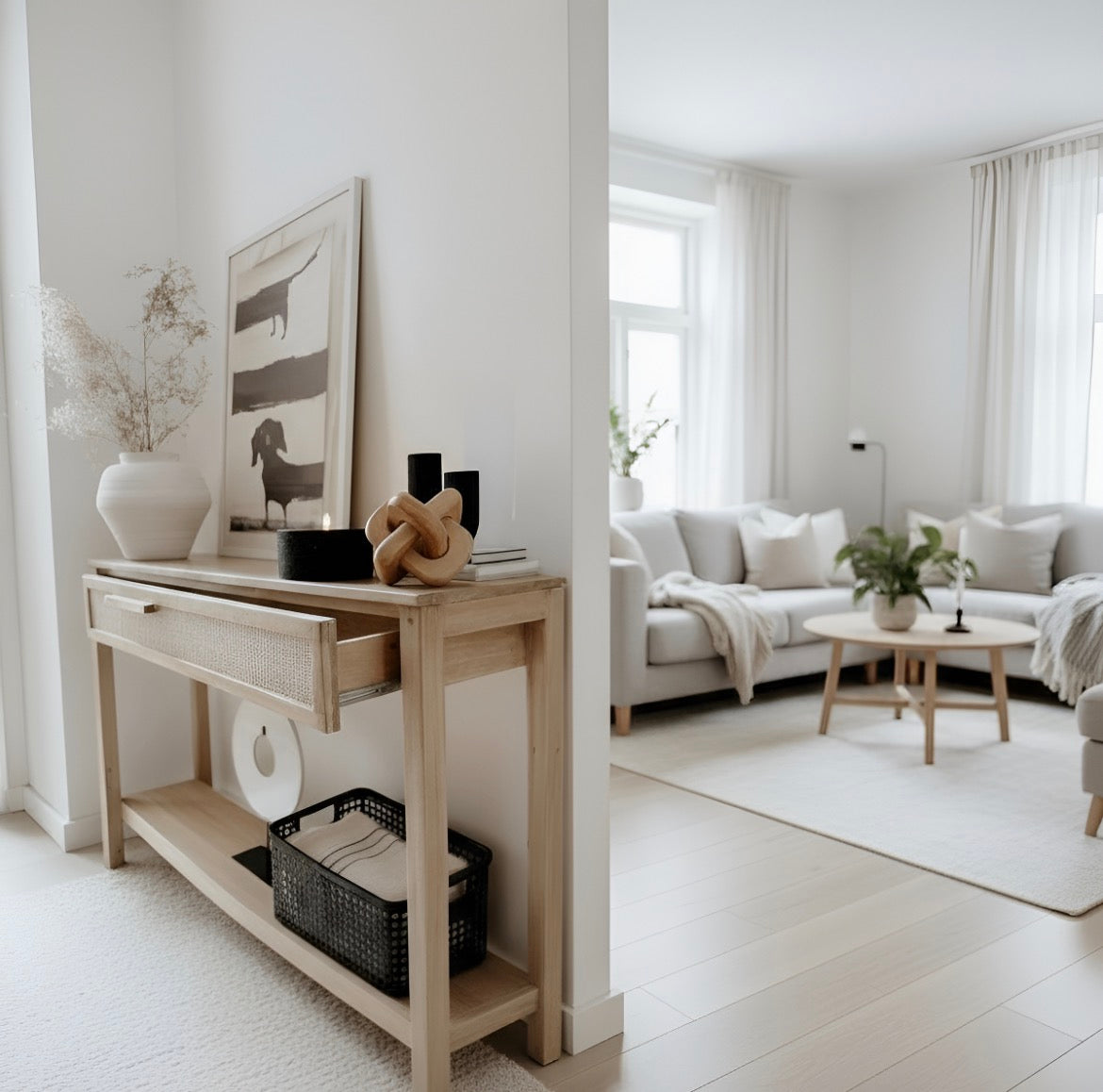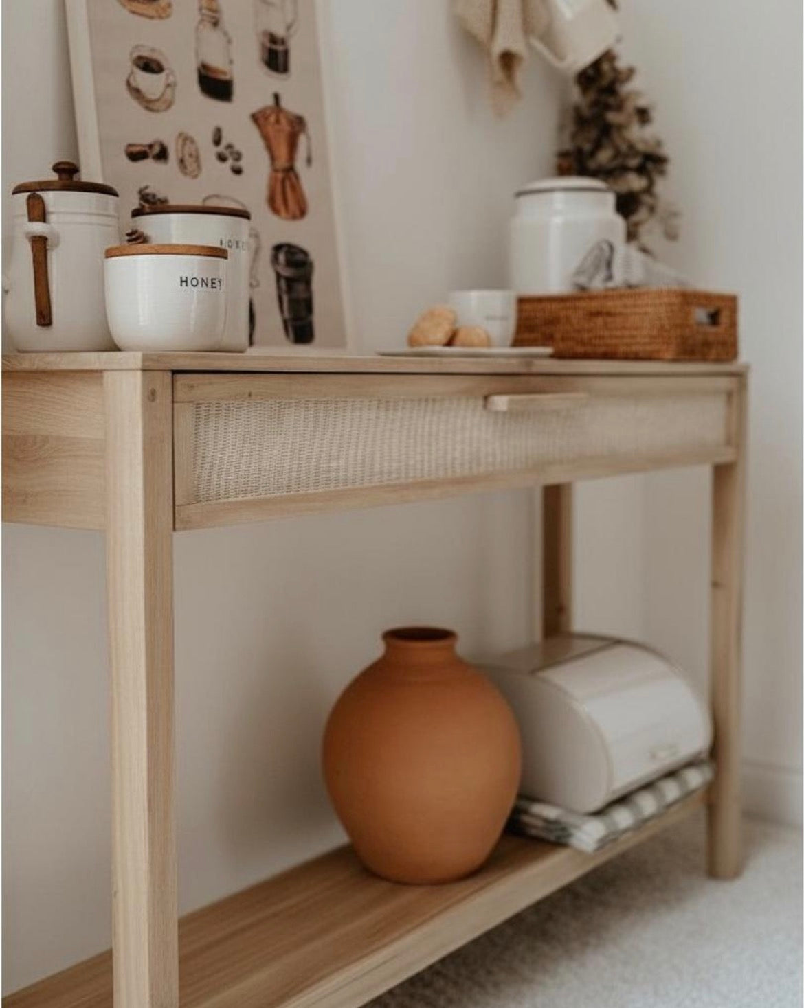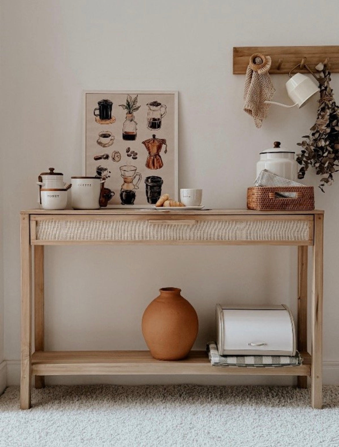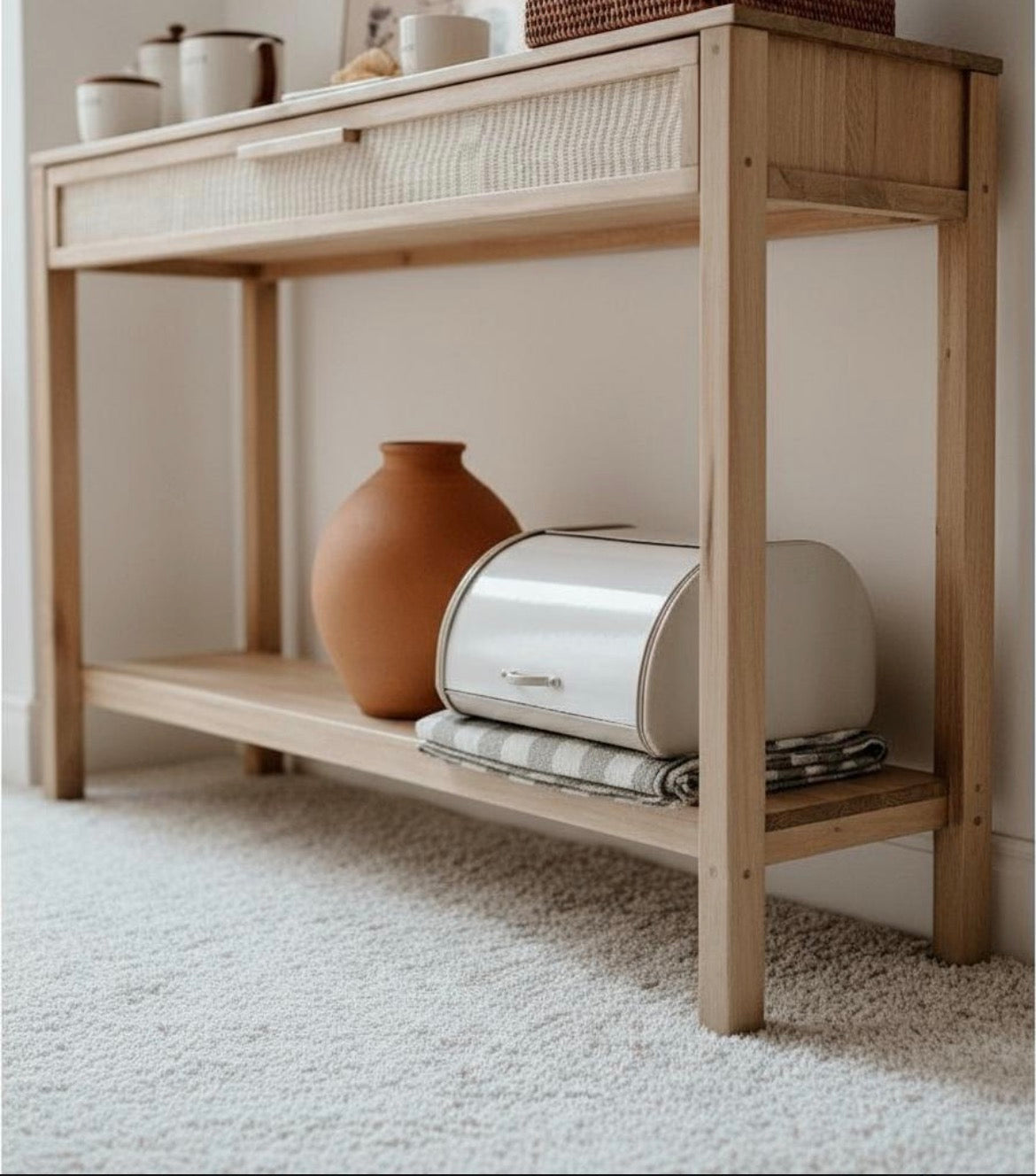 Recibidor Madera Maciza Cajon Fibra Natural con Estante 100cm