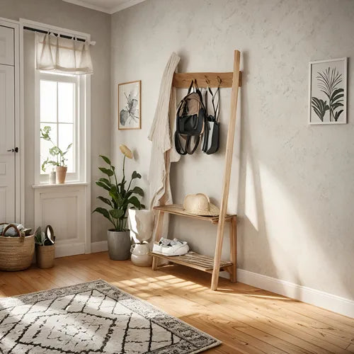 Recibidor Perchero Zapatero Madera Nordico Color Petiribi